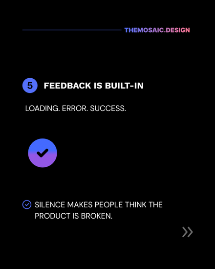 Is something loading? Did a form submission fail? Did it succeed? Tell your users. Silence creates doubt. Micro-interactions and feedback loops are how you build confidence.