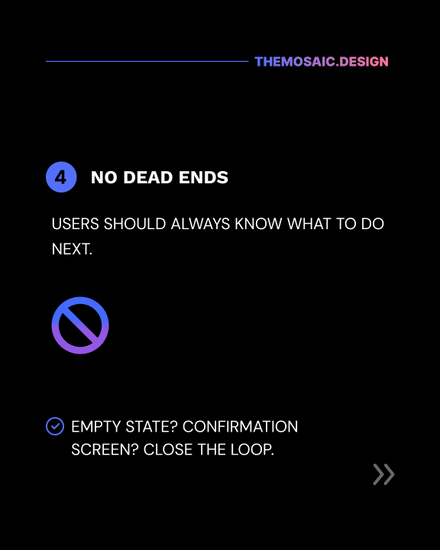 4. There’s zero dead ends Every interaction should lead somewhere. Whether it’s a next step, a thank-you message, or an email confirmation, never leave users wondering if they finished the task.