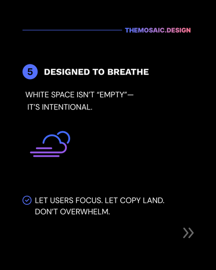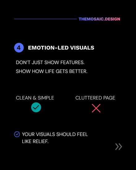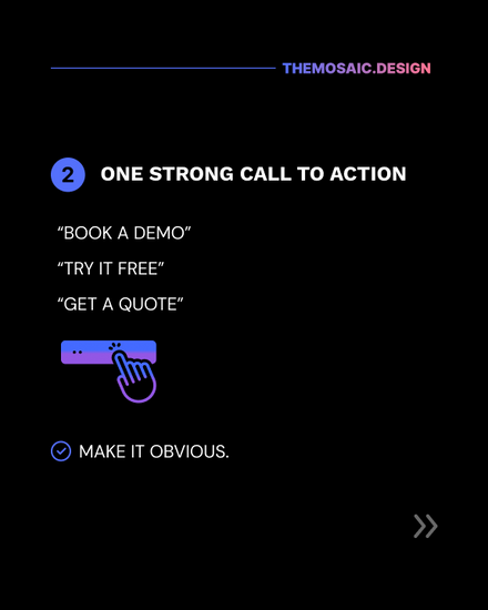 Your eyes should flow through the page naturally: Headline → value → benefit → action.